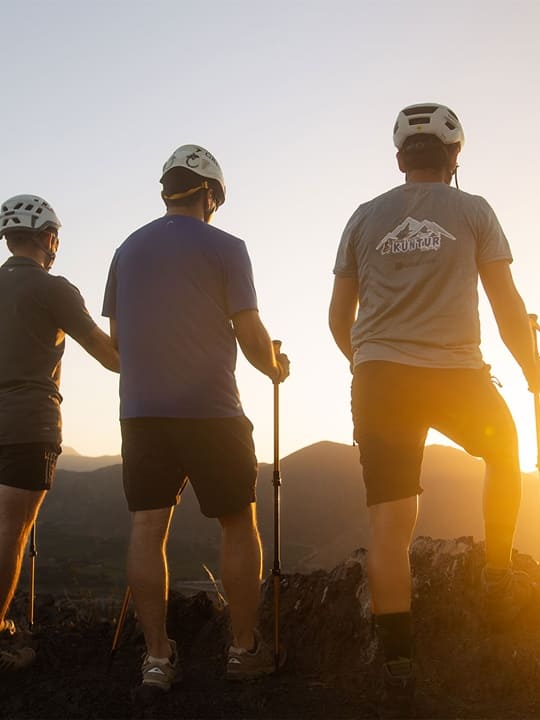 Uso de casco, bastones, linternas y briefing de seguridad antes de cada salida.